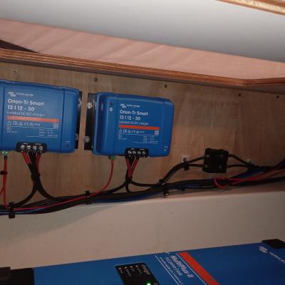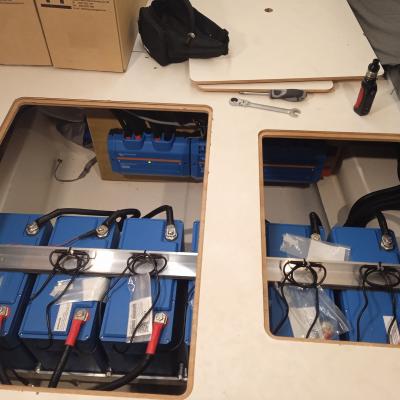 Installation of Victron lithium system. 1200Ah of lithium batteries, 1800 W of solar, Multiplus II 3000 VA inverter/charger and all the other nice things from Victron. Before/after
